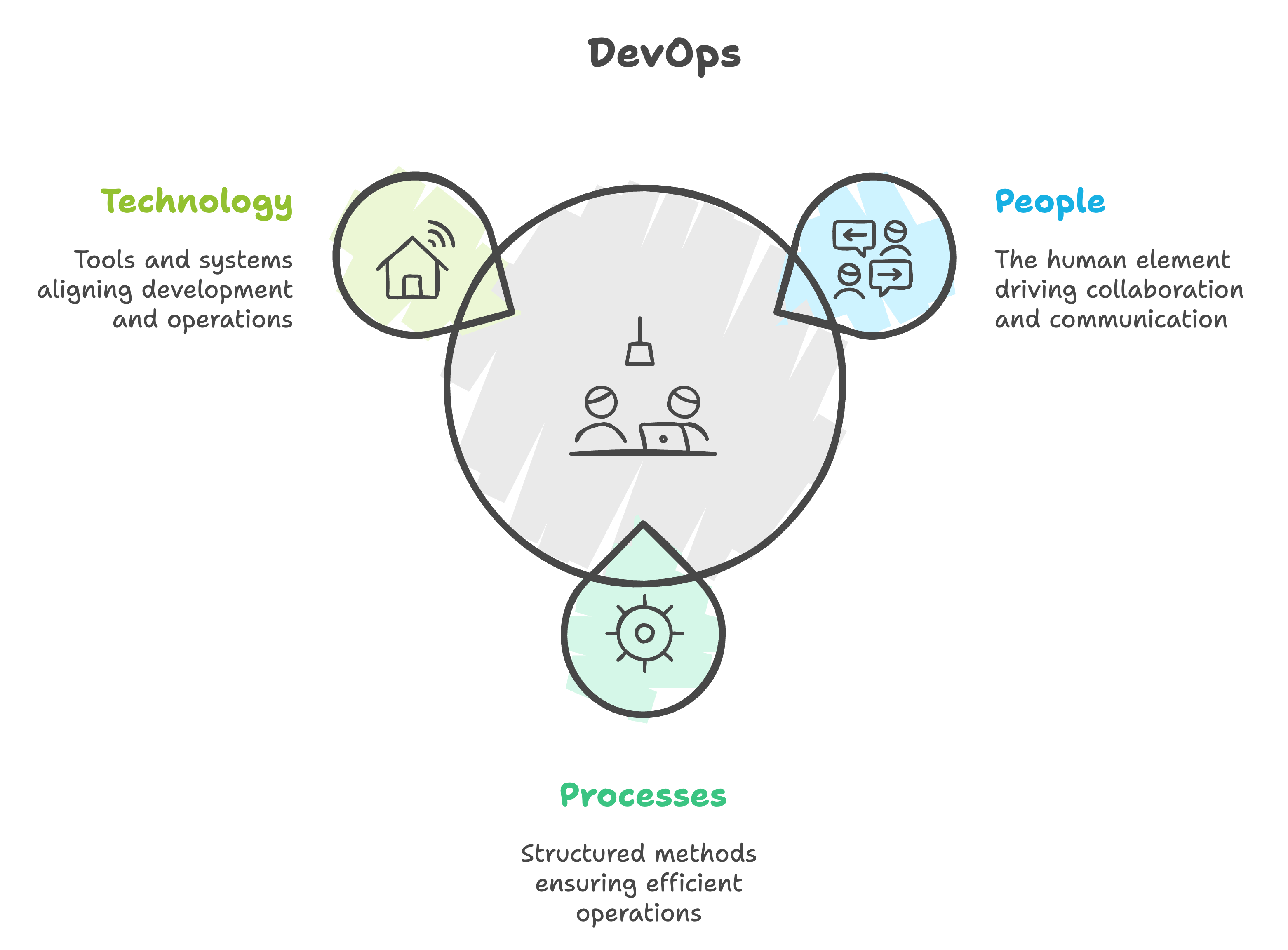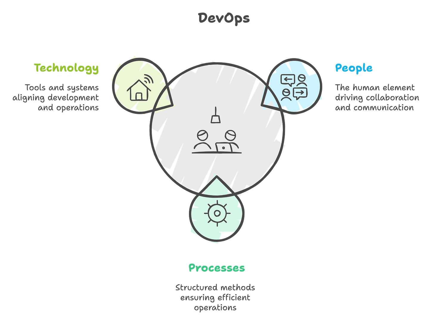 Tools: Tools are the first things most teams think of when it comes to DevOps because they want to deploy faster. But focus on tools alone may lead to tool sprawl, improper configurations due to lack of training, and siloed implementations if not everyone is on board. Rather than deploying faster, it will result in actually more overhead and complexity.